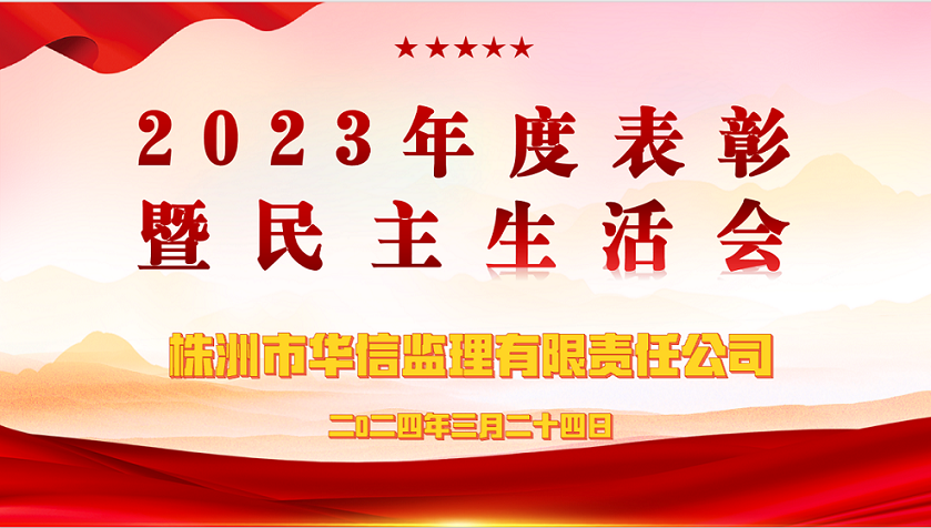 3月24日下午,株洲市華信監(jiān)理有限責(zé)任公司召開(kāi)“2023年度表彰暨民主生活會(huì)”。會(huì)議由周?chē)?guó)杰董事長(zhǎng)主持,公司管理層、各項(xiàng)目總監(jiān)、部門(mén)負(fù)責(zé)人等30余人參會(huì)。